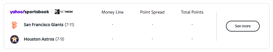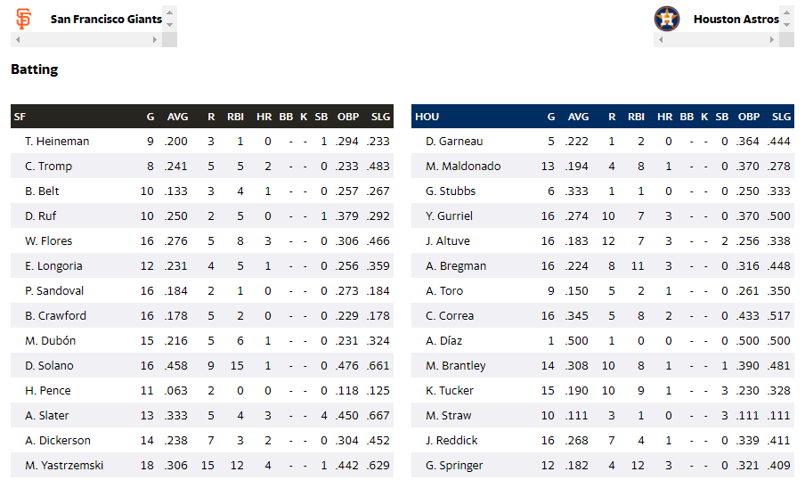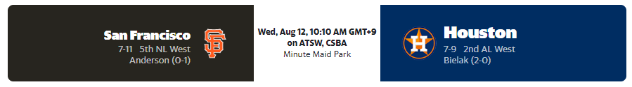 앤더슨은 콜로라도 로키스에서 투구하던 2018시즌 두 차례 등판 모두 아스트로스전에 선발 등판해 0.71에 평균자책점 7.71을 기록하고 있다. 앤더슨은 이날 미닛메이드파크에서 단독 선발 등판해 홈런 3개를 포함해 7안타에 9실점, 4 1/3이닝 동안 삼진 4개를 곁들인 볼넷 3개를 허용하며 12-1로 패했다.자이언츠의 신예 우완 로건 웹이 24일(현지시간) 시즌 최다인 81개의 공을 던지며 뒤쪽의 수비가 흔들리지 않을 경우 선발로 더 깊숙이 들어갈 태세를 보였다. 웹은 지난 시즌 8월 17일 데뷔에 이어 8차례 선발 등판 중 5차례 선발 등판해 90개 이상의 투구했다.