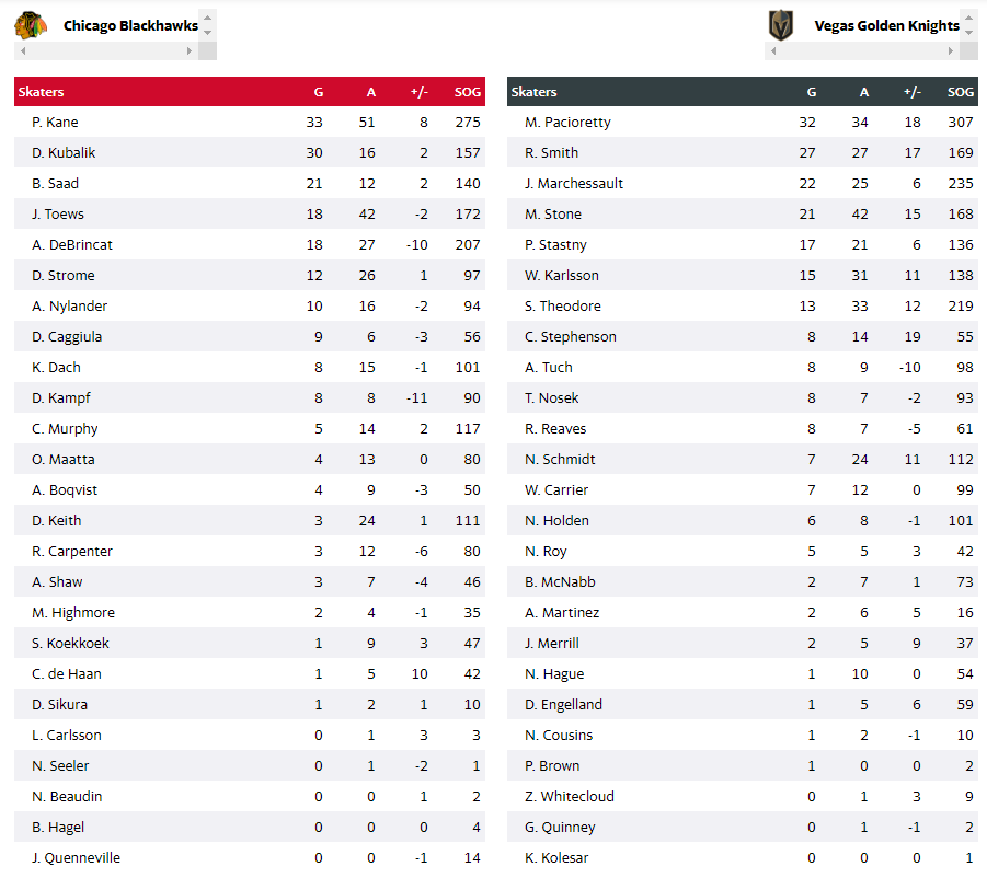 블랙호크들이 전에는 깨닫지 못했었다면, 지금은 깨닫는다.시카고 포워드 브랜든 사드는 "베가스에 대해 좋은 예찰팀"이라며 "그들은 퍽을 깊게 파고들어 단순하게 플레이하고 우리 팀보다 앞서나가는 것을 좋아한다"고 말했다. (방어)도 크고, 박스아웃도 하고, 강한 플레이도 하고."골든나이츠 역시 실력이 부족하지 않은데, 이는 1차전 3차전에서 1골차 선두를 3골차 방석으로 바꾼 마지막 두 골에서 증명된다.레일리 스미스는 조나단 마르셰솔이 매회 세운 두 골을 모두 넣었다.골든나이츠도 정규시즌 팀의 간판 골이자 득점왕인 맥스 패시오레티가 부상으로 3차례 라운드로빈 경기에 결장하면서 상위권을 다졌다.그는 아이스 타임 18:08에 골인 4발을 성공시키며 마이너스 1로 경기를 마쳤다.