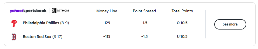 에플린은 6일 볼티모어 오리올스와의 경기에서 5-4로 뒤진 마지막 선발 등판 6이닝 동안 7피안타 4실점하며 마운드에 올라 있다. 하지만 그는 통산 10타자 중 가장 높은 타자를 삼진으로 잡아냈다. 에플린은 처음으로 보스턴과 맞붙는다.미국프로농구(NBA) 상대인 셀틱스와 76ers가 플레이오프 1차전에서 맞붙으면서 레드삭스와 필리스가 맞붙는다. Celtics는 월요일 7게임 시리즈의 첫 경기에서 승리했다.
