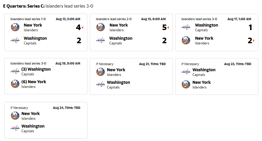 워싱턴 캐피털스는 스탠리컵 우승이 2년 앞으로 다가왔으며 그의 세대의 가장 재능 있는 골잡이 등 우승팀의 핵심을 여전히 갖추고 있다.하지만 뉴욕 섬 사람들은 그들의 편에 장단기 역사를 가진 팀이 될 것이다.아일랜드인들은 화요일 밤 토론토에서 열리는 동부 콘퍼런스 8강전 4차전에서 캐피탈스의 완승을 기대하고 있다.아일랜더스는 23일(현지시간) 매튜 바잘이 연장전 4분 28초 만에 골을 터뜨려 뉴욕을 2-1로 이겼다.아일랜드 사람들은 2년 연속 플레이오프 시리즈에서 3대 0으로 앞서고 있다. 뉴욕은 지난 4월 동부 콘퍼런스 8강전에서 피츠버그 펭귄스의 싹쓸이를 4차전에서 3대 1로 완승했다.